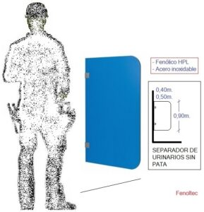 Separadores estándar de urinarios de 1,40 x 0,40 m. en fenólico.